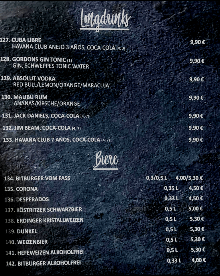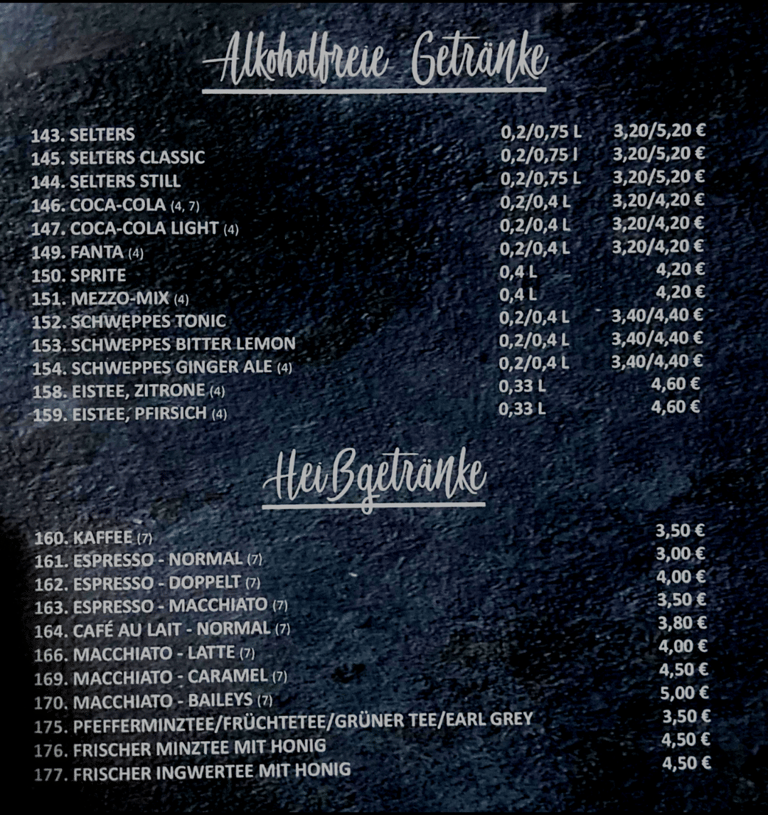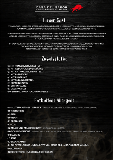 Einige Gerichte können Milchprodukte und andere Allergene enthalten.