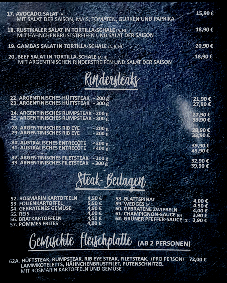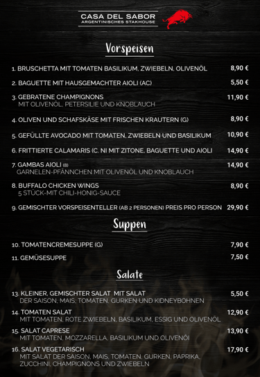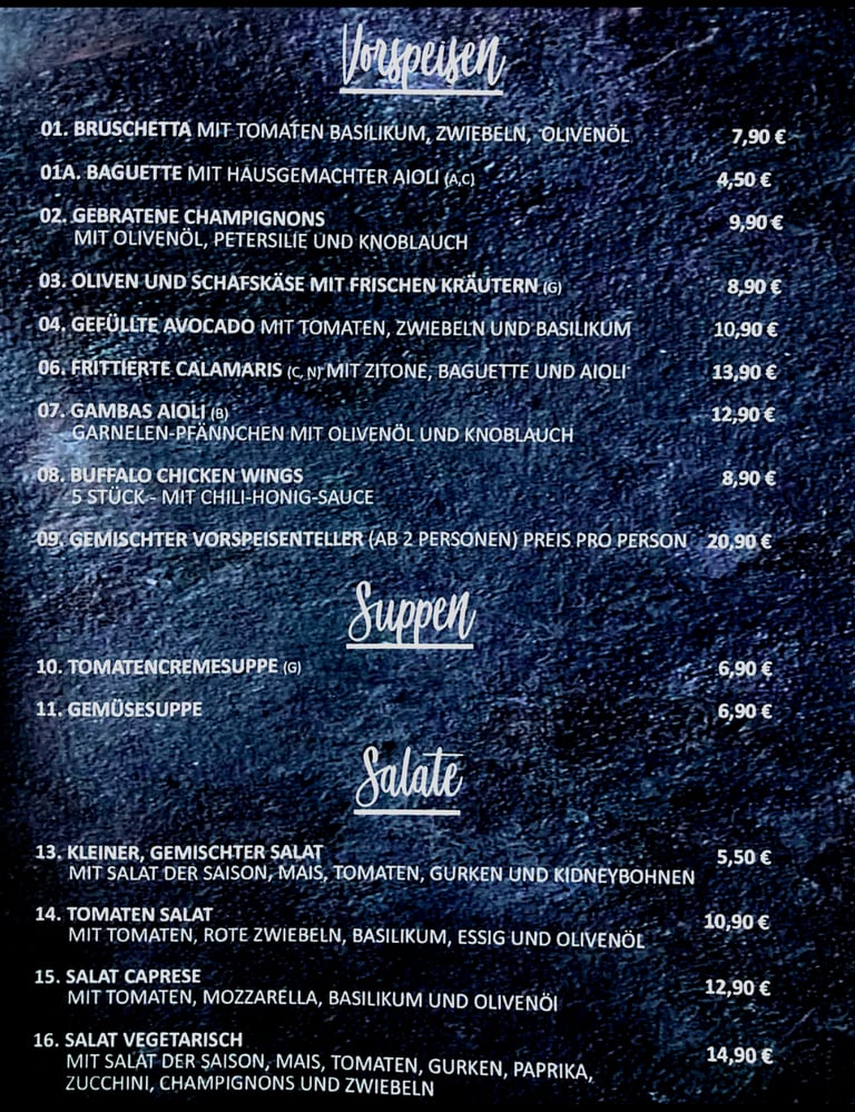 Unsere Speisekarte